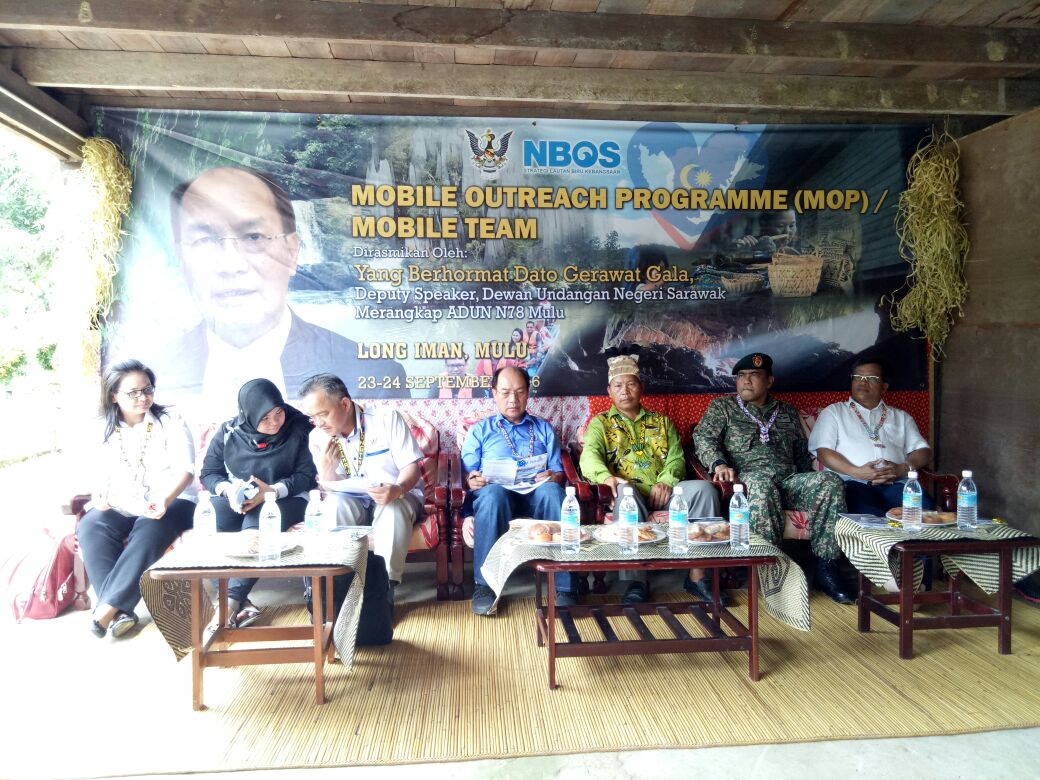 NBOS outreach Programme di Long Iman (Mulu), Tutoh Apoh,Baram. Sebanyak 18 Agensi Kerajaan bersama Angkatan Tentera Malaysia telah menyertai dan seterusnya menjayakan program yang diadakan selama 2 hari bermula 23 sehingga 24 September 2016. Program ini telah dirasmikan oleh Yang Berhormat Dato' Gerawat Gala, Timbalan speaker Dewan Undangan Negeri Sarawak merangkap ADUN N.78 Mulu.